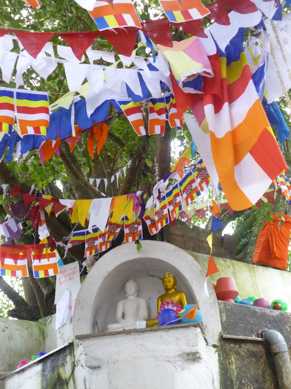 Visite de Kandy jour de poya (pleine lune), de nombreuses familles venues prier autour du temple de la dent, belle atmosphere, par contre c est ici que que nous nous rendons compte que le sri lanka n est pas si accessible, en effet pour visiter le temple un touriste etranger deboursse 1000 roupies, j apprends aussi que pour visiter sigriya je devrais payer 30 $US, sans compter le prix des hebergements, qui explosent en ces lieux.